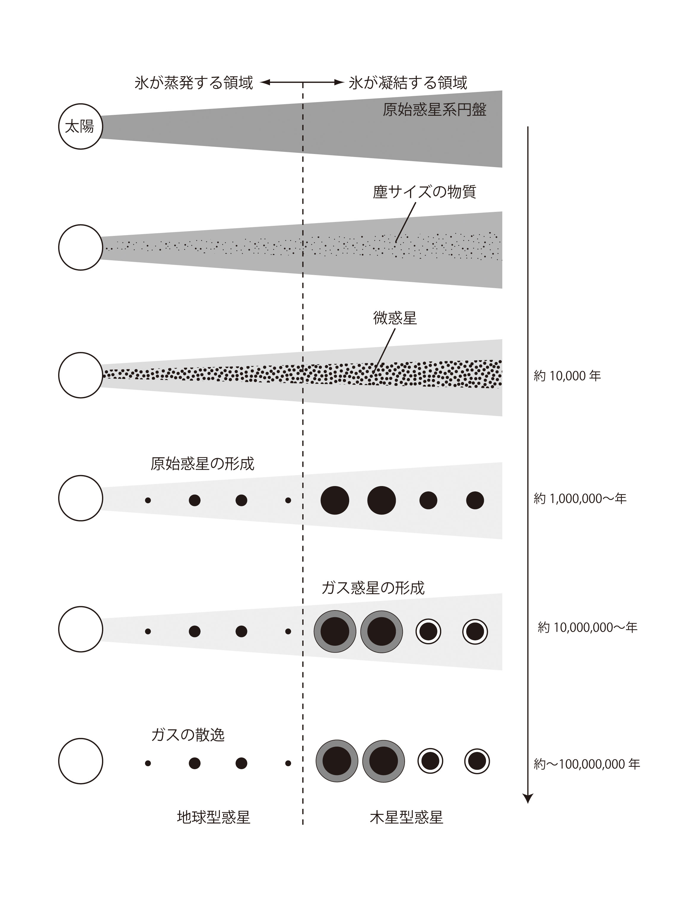 【1-1】太陽系の形成モデル >>> こちら