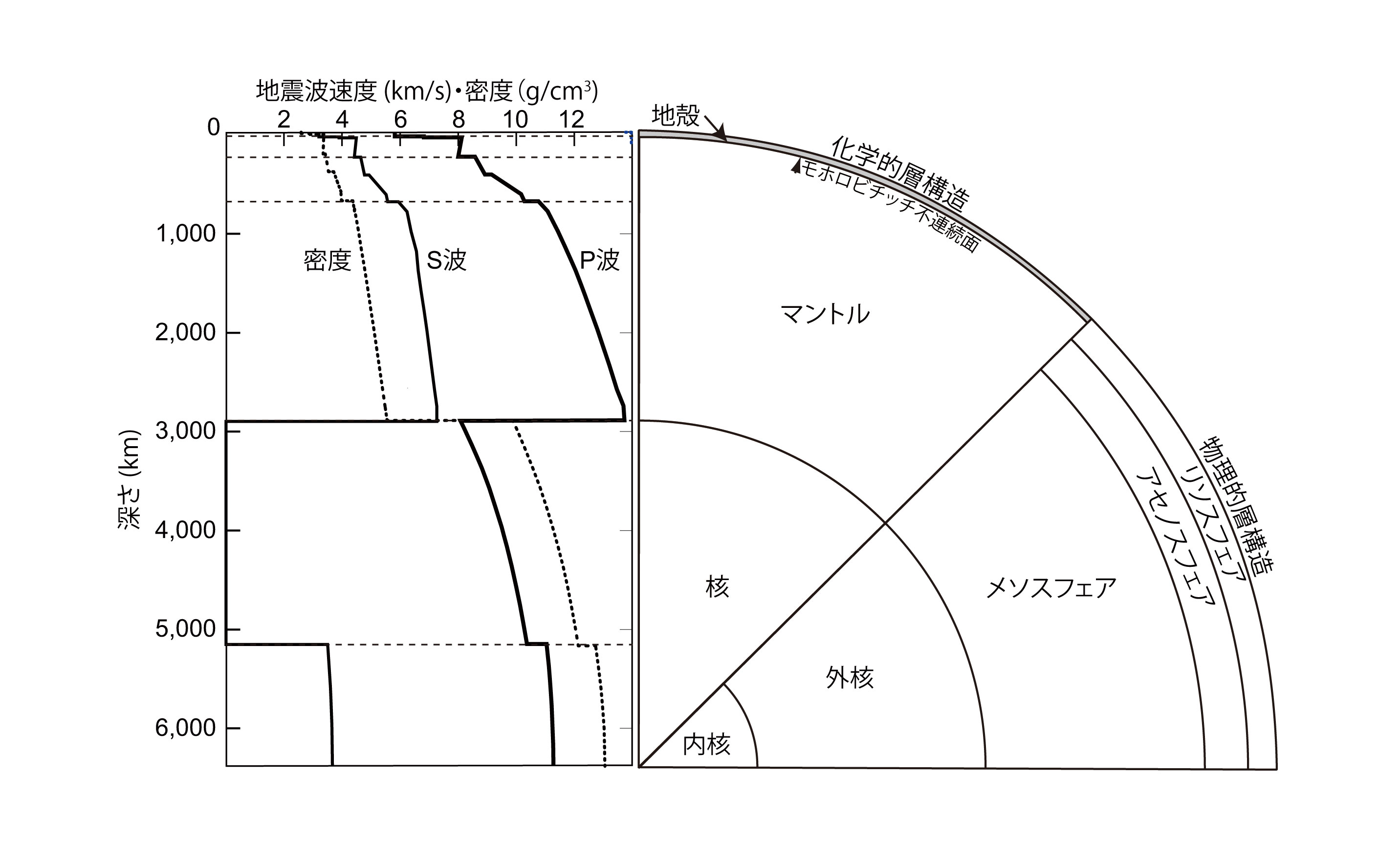 【1-17】地球内部の地震波速度および密度の変化>>> こちら