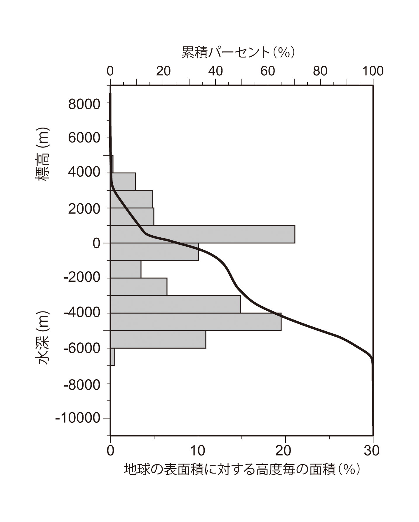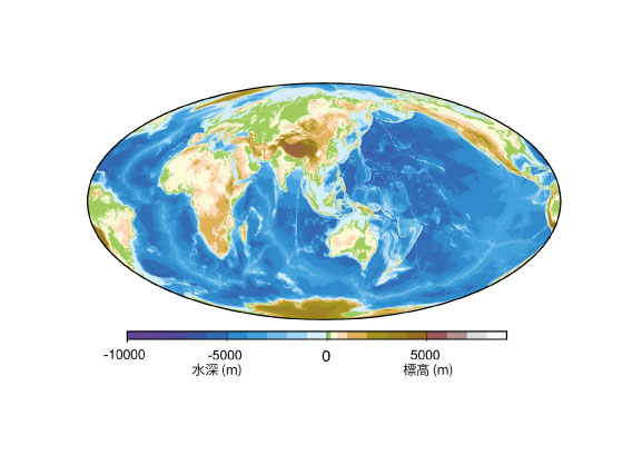 【1-4】地球固体表面の起伏を示した図>>> こちら