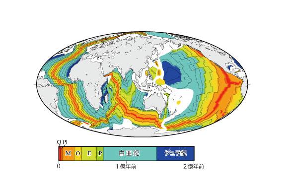 【1-8】海底(海洋地殻)の形成年代>>> こちら