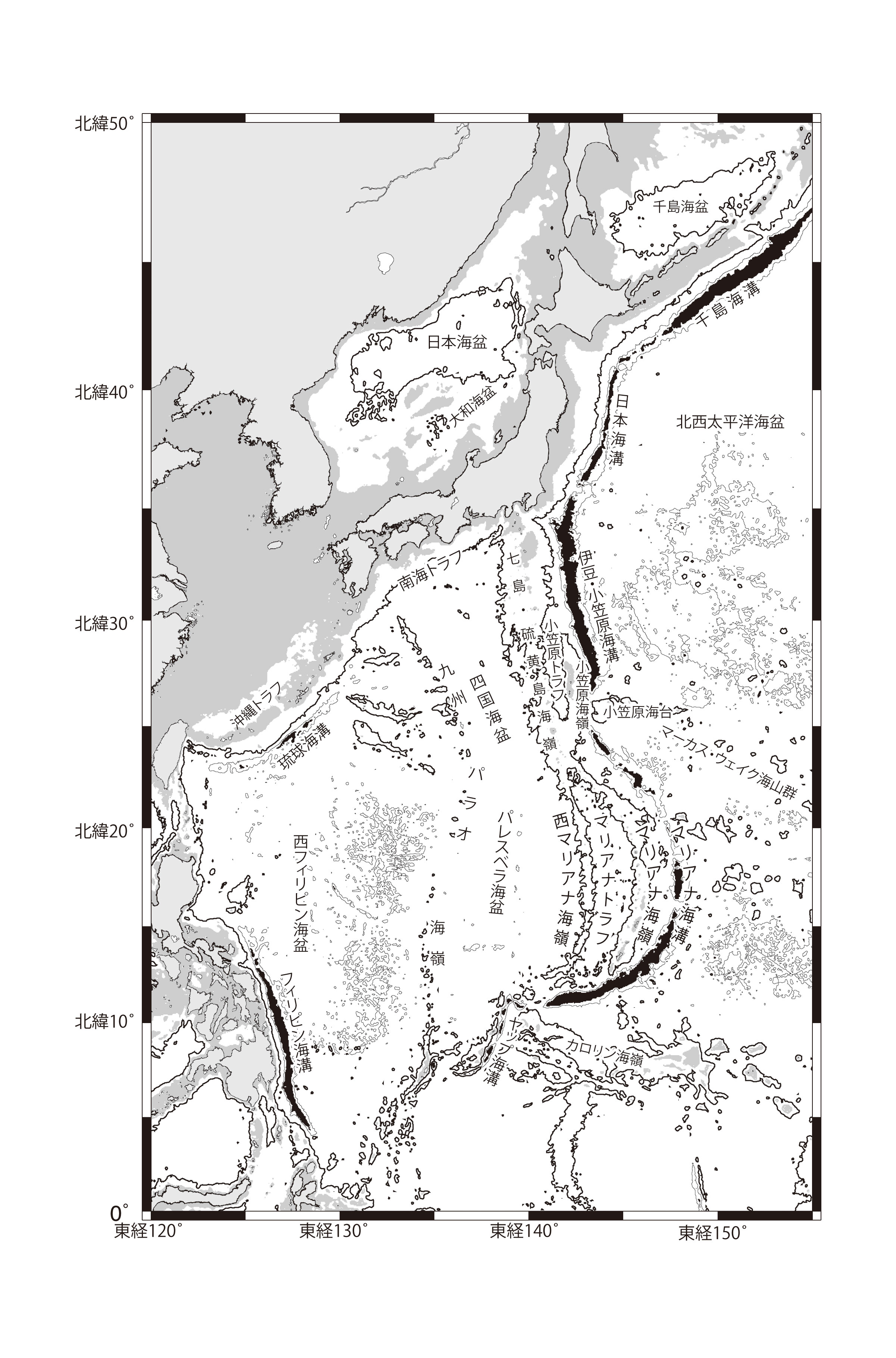 【1-9】日本列島周辺の海底地形図>>> こちら