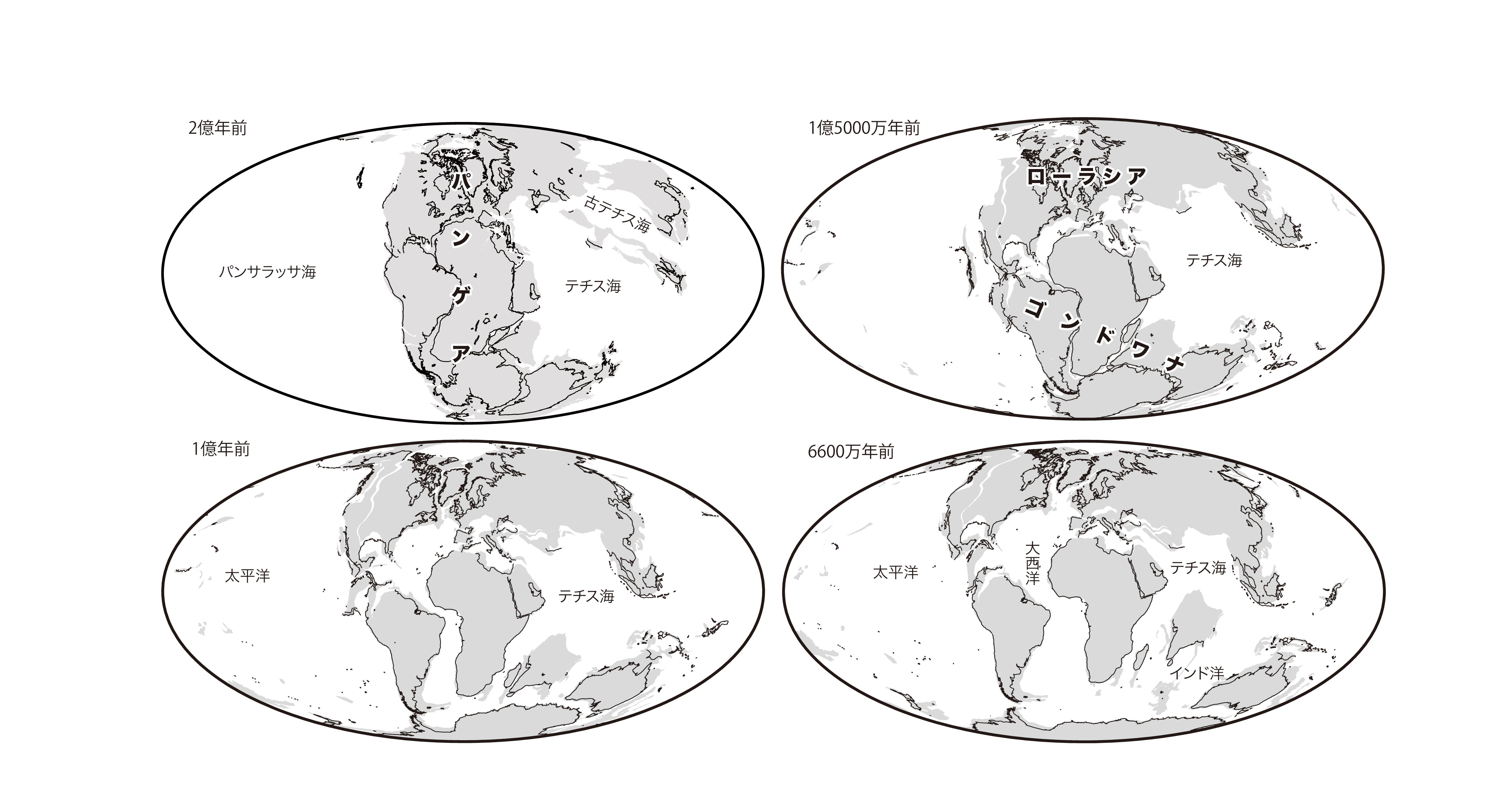 【2-16】2億年前以降の大陸移動と海洋底拡大の歴史>>> こちら
