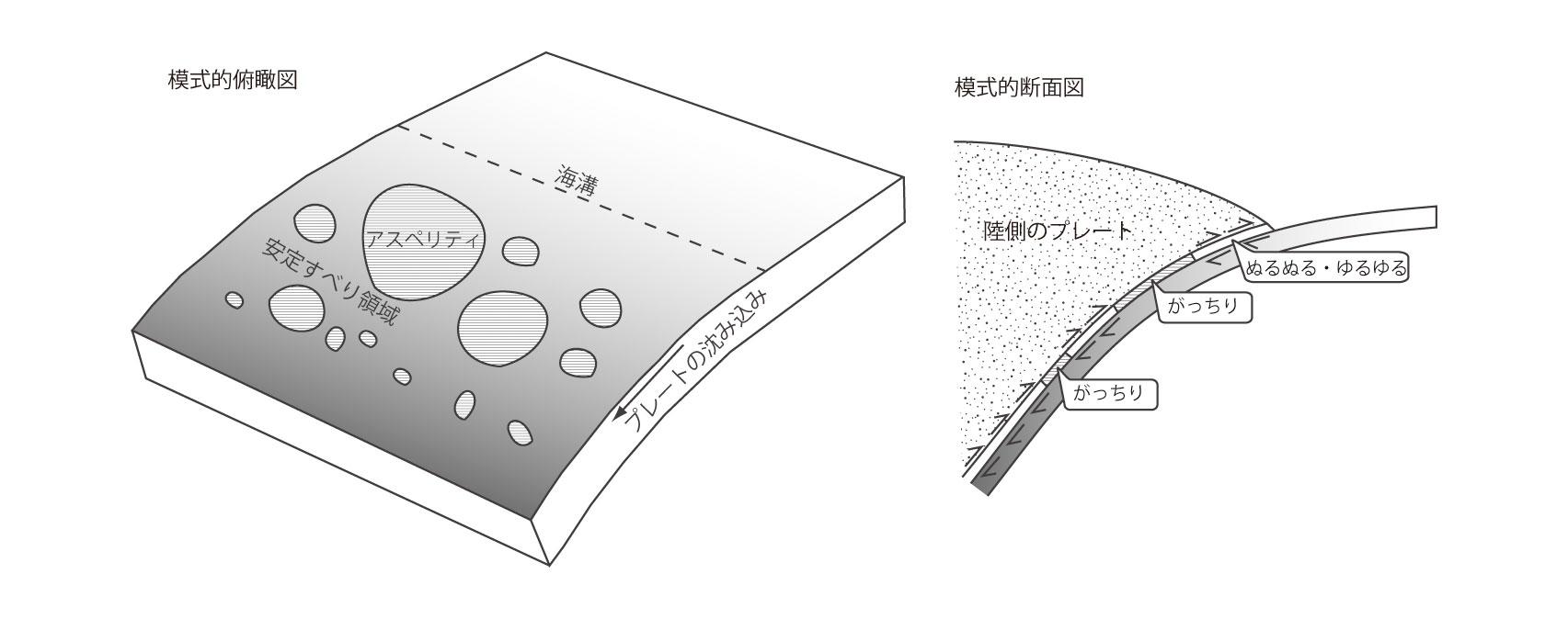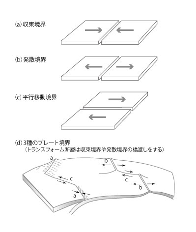 【3-12】プレート境界での2つのプレートの接触の様子を示した模式図 >>> こちら