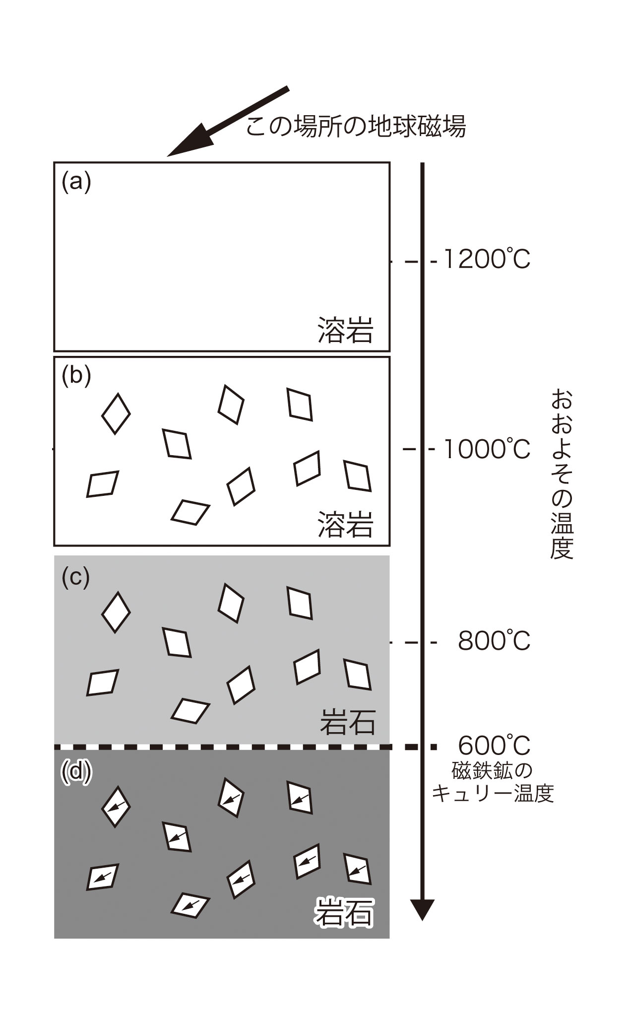 【2-8】代表的な磁性鉱物・磁鉄鉱が磁化を獲得する過程を示した模式図 >>> こちら