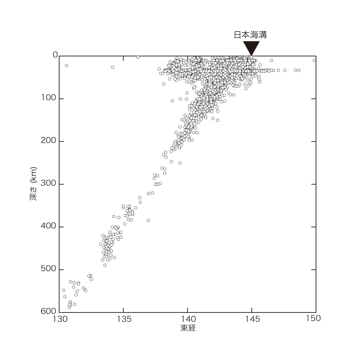 【3-10】1973年1月1日から2013年3月31日までの期間に、東北日本周辺(東経130°から150°、北緯38°から42°)で生じた地震 >>> こちら