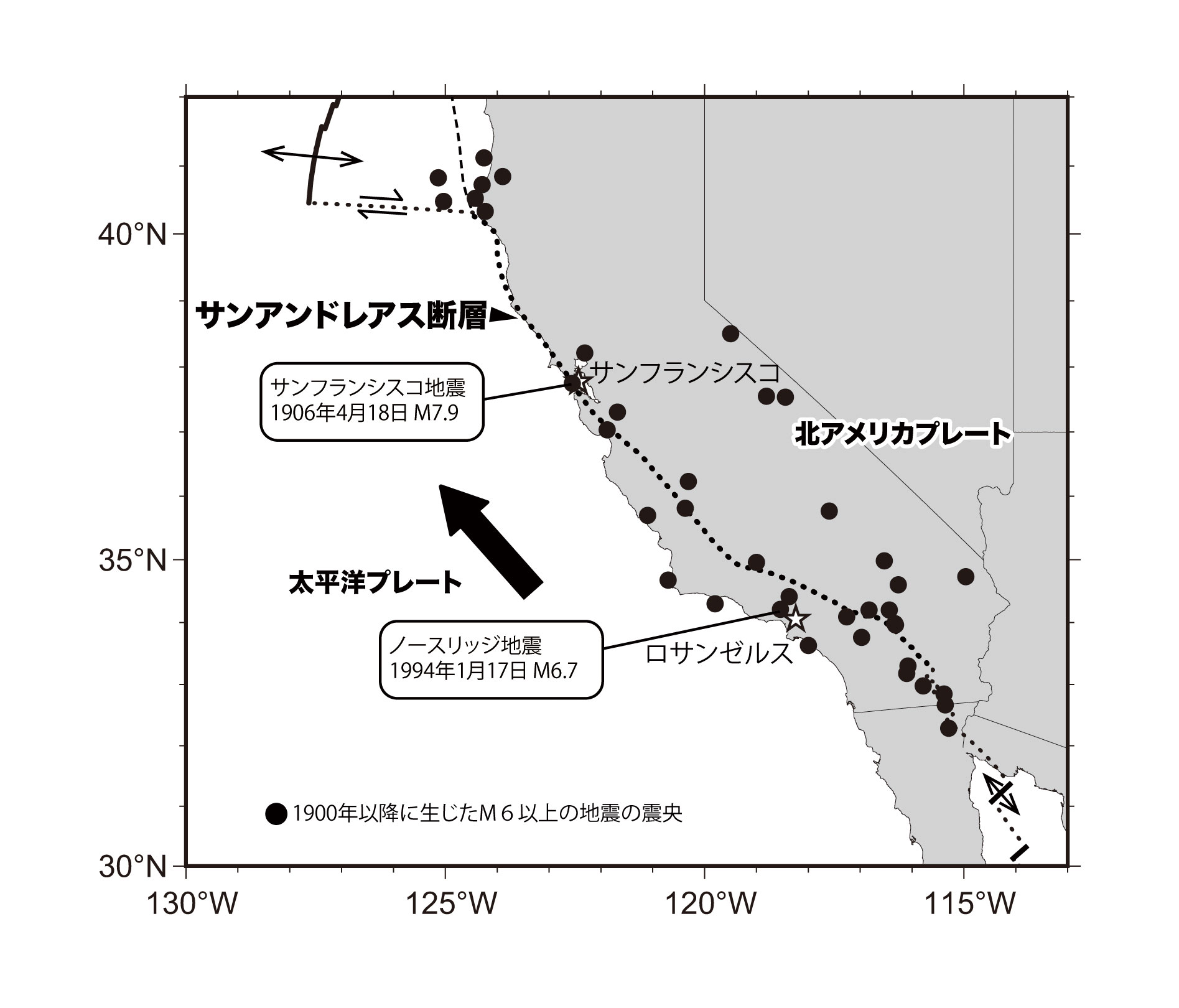 【3-16】サンアンドレアス断層沿いで発生した地震の震央 >>> こちら