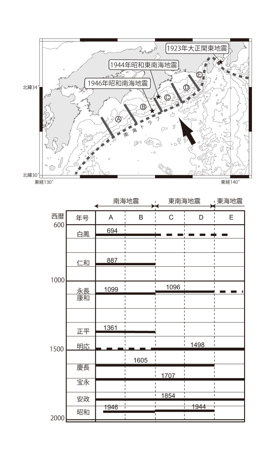 【3-17】フィリピン海プレート北端部での巨大地震の時空間図 >>> こちら