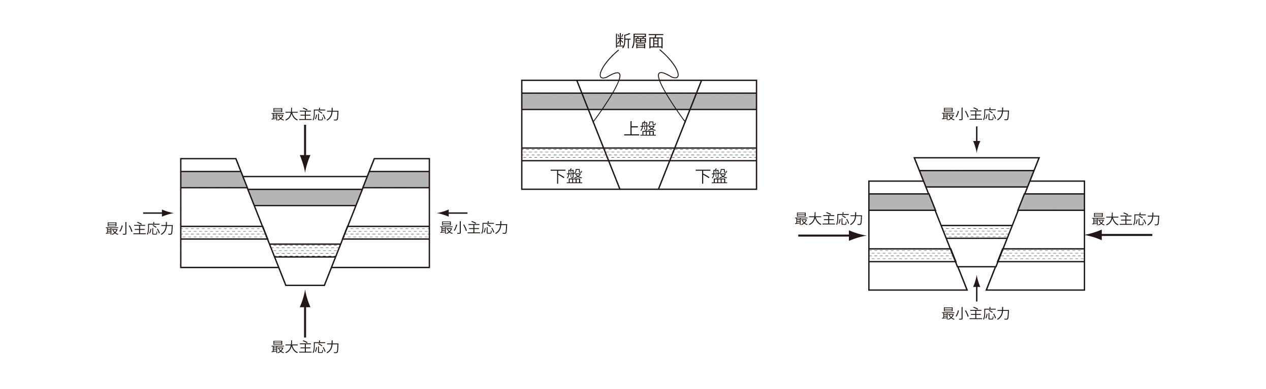 【3-2】断面方向からみた場合の応力と断層の関係 >>> こちら