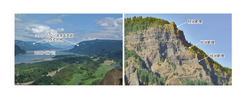 【4-20】北アメリカ大陸に分布する巨大火成岩岩石区である「コロンビア川洪水玄武岩」の様子 >>> こちら