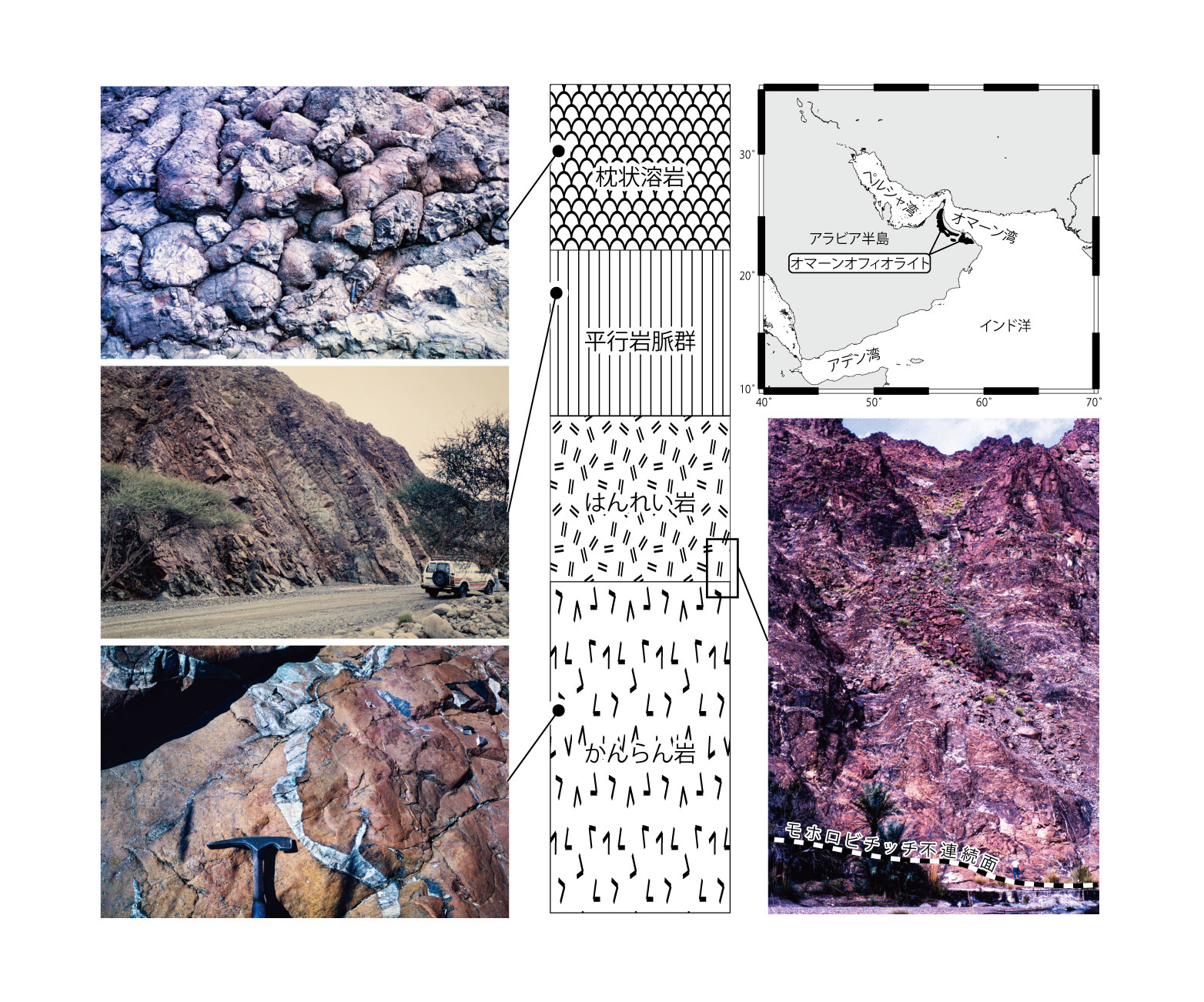 【4-8】オフィオライト層序とオマーンオフィオライトで観察される岩石類 >>> こちら
