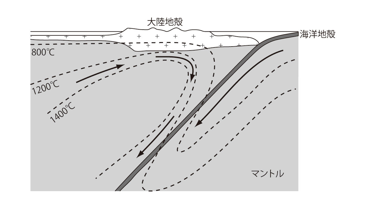 【4-9】沈み込み帯での温度構造の模式図 >>> こちら