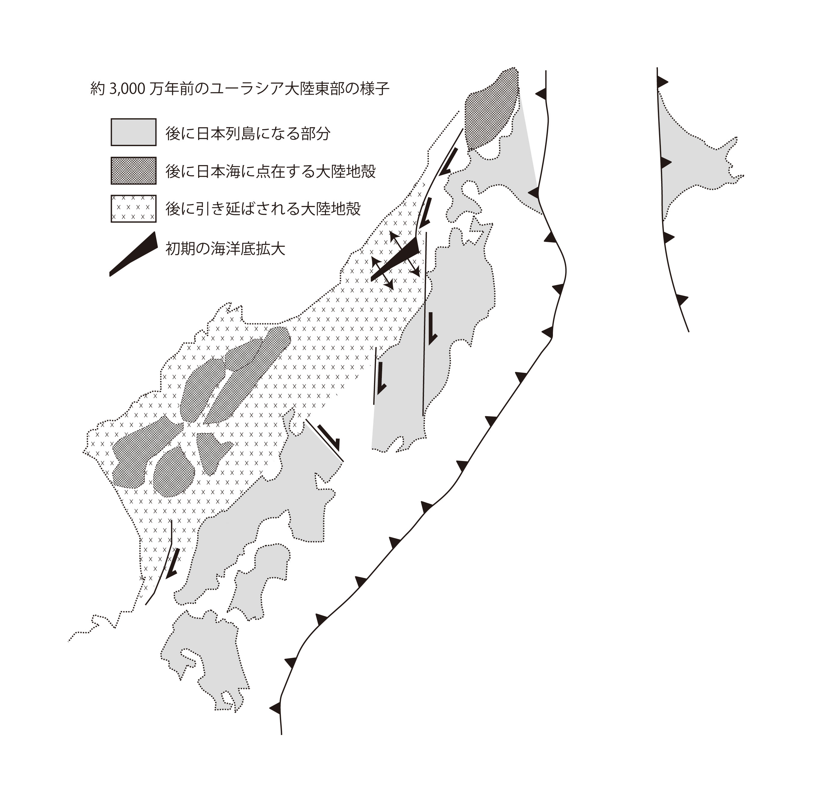 【5-6】約3,000万年前の日本海拡大前のユーラシア大陸東部の様子 >>> こちら