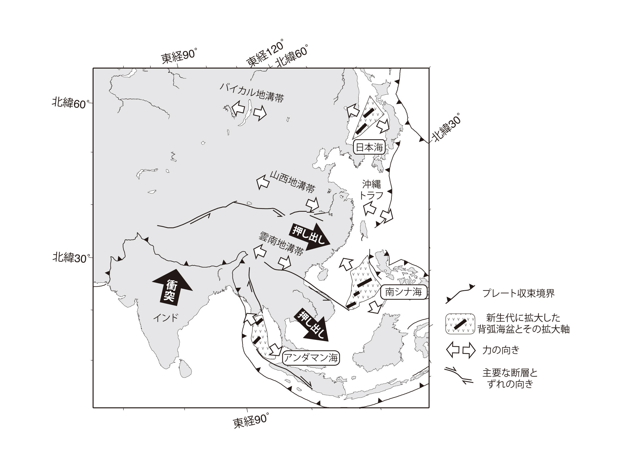 【5-7】東アジアのテクトニクスの模式図 >>> こちら