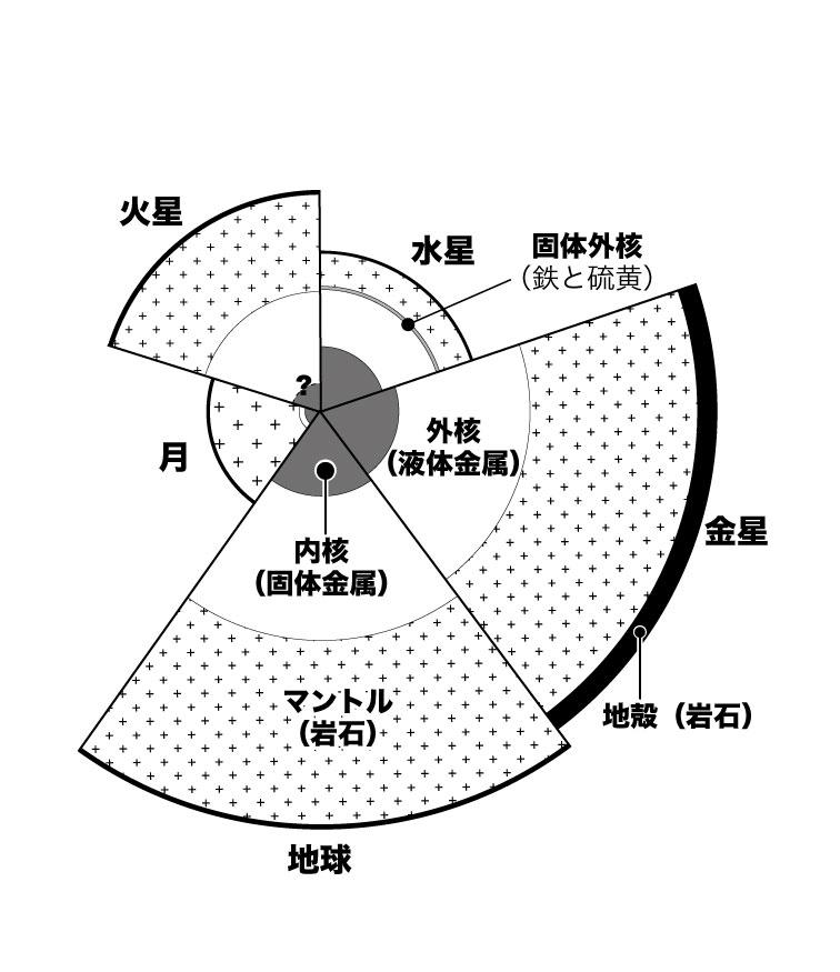 【5-9】地球型惑星の内部構造の模式図 >>> こちら